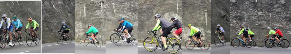 Rápidamente nos camuflamos en la nube de ciclistas aficionados que tapizaban la calle 80 rumbo al Alto del Vino. Al parecer los primeros en coronar el alto del Vino fueron los Bedoya, los Otálora, Fernando, y Dúber, luego Héctor seguido de cerca por Luis Hebert y Orlando, un poco más atrás Juan Fernando y Nobile escoltada por Pulga y Wilfran.