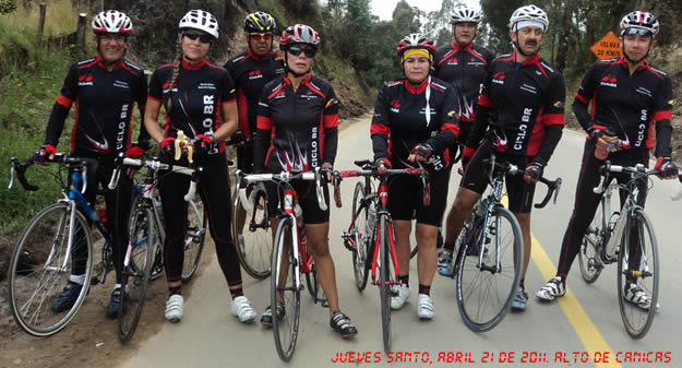 Para evitar las tentaciones del demonio el mundo y especialmente de la carne, un grupo de pedalistas de CicloBR decidió interrupir los retiros espirituales momentáneamente para autoflagelarse y salir a montar en bicicleta; El jueves santo pagaron una penitencia de 85 kmts en el trayecto Siberia-Canica- Pradera- Siberia. En la foto los devotos cuando cumplían parte de la penitencia en el alto de Canica. En la foto faltan cuatro penitentes más que apenas venían subiendo cuando el fotógrafo concluía su labor.