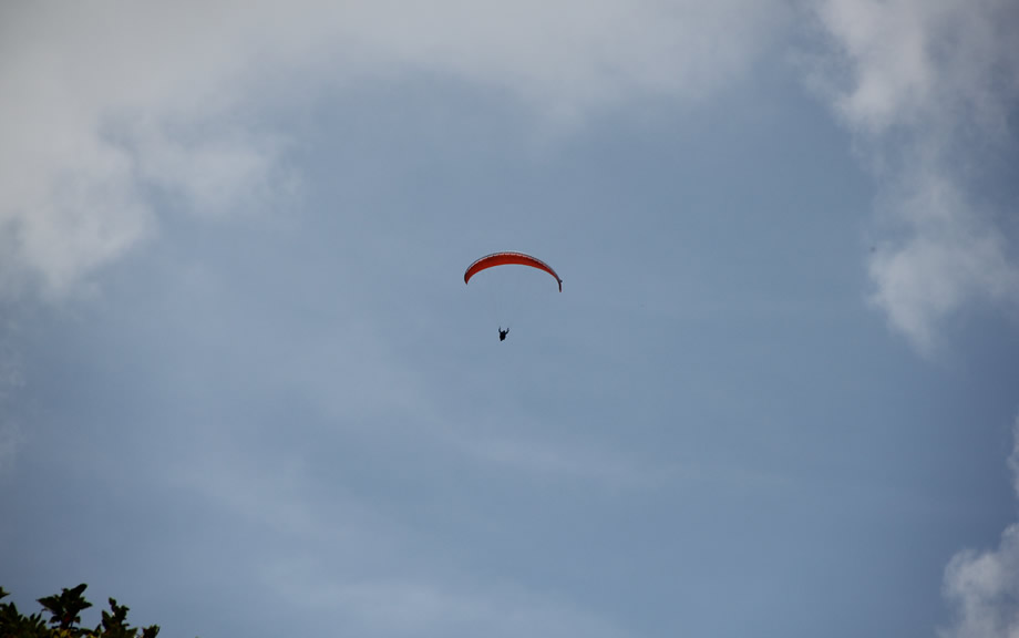 Arriba las montañas que se perdían en el azul inmenso del cielo. Por momentos el lago desaparecía pues la carretera parecía alejarse, entonces la vegetación y los árboles y arbustos multicolores hacían calle de honor. Al superar un pequeño repecho pude apreciar la cadena de montañas que se entrelazaban para formar un círculo gigante custodiando la laguna, de pronto para que nadie se atreva a robar el preciado líquido; al fondo, un hermoso cielo azul adornado con nubes blancas, semejando un paisaje de Rubens. En lo alto como un ovni flotaba un parapentista que parecía estar espiándome, ()