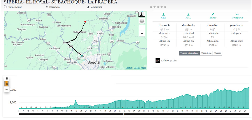 86 kmts en total, de un agradable recorrido que hacía dos años no programábamos, más adelante haremos un reporte sobre el estado de las vías para guía de nuestros colegas ciclistas.