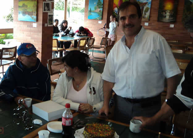 Aprovechamos la reunón sabatina en la cafetería y le celebramos el cumpleaños a nuestro presidente y de puros aprovechados nos comimos la torta que él amablemente traía para el profe.