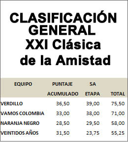 Recordemos que el equipo Verdillo comandado por Miguel Granados iniciaba la etapa con 36,5 puntos, apenas 3,5 más que el Equipo Vamos Colombia a cargo del poeta Andrés Forero.