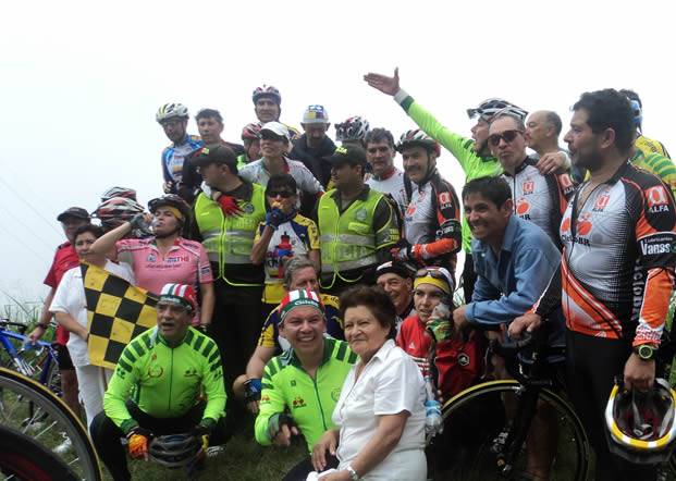 Son las 10:50 a.m. y en la cima del Cerro de la Cruz, (vía a Icononzo), pese a la baja temperatura, un grupo de 19 amigos y familiares celebra con algarabía la llegada uno a uno de los 33 ciclistas veteranos que partieron casi a las 9 de la mañana desde la población de Melgar en cumplimiento de la quinta y última etapa de la XXI Clásica de la Amistad.
