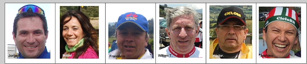 Gracias a todos los amigos que sin pertenecer al Grupo nos acompañaron en varias salidas: a Andrés Córdoba el médico de CicloBR quien nos visita cada año desde la Florida, Mario Torres, David Bazurto, Mónica (Tulia Rosa), Natalia García, Alfredo Violi, y a los ex CicloBeres, Manuel Leal, Gilberto Lozano y Carlos. Reina. No olvidamos a Dieguito un ciclista que le prestamos a la Fuerza Aérea Colombiana.