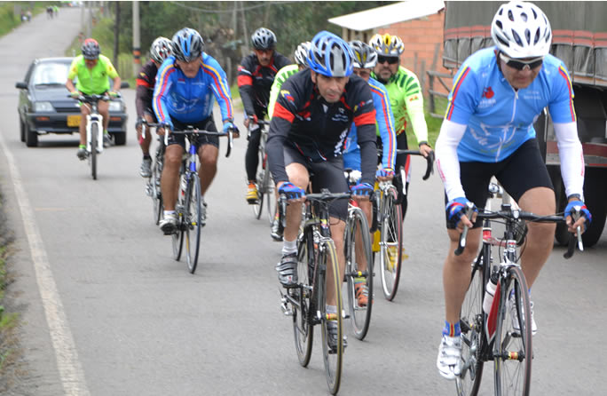 El ascenso hasta el pueblo son más o menos cinco kmts, con una pendiente continua muy pedaleable, en la primera parte pero algo exigente en los dos kilómetros finales. La idea era subir tranquilos en grupo hasta el pueblo donde realmente iniciaba la competencia, pero Márquez prendió la moto y aceleró al grupo; venía frustrado por la paliza que el domingo anterior le había propinado la mona, parece que lo dejaron coronar de primero. No obstante vimos a Esthercita luchando hombro a hombro con Galindo y Pedraza, entre otros, para tratar de cazar al escapado que finalmente logró su cometido.