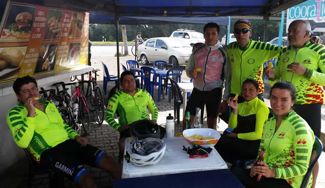 Destacamos la presencia de Marcolino quien se reintegra luego de varios meses de inasistencia por prescripción médica. Hizo toda la etapa, además nos llevó deliciosas tajadas heladas de piña de los llanos. Calculó que asistirían 30 pedalistas y llevó su neverita con esa cantidad.