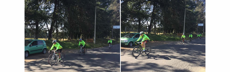 El recorrido hasta El Rosal se caracterizó porque el grupo se mantuvo compacto, pese al deseo que por momentos mostraron algunos aventajados, que siempre les fascina mantenerse en la vanguardia, y si les dan la oportunidad se escapan para verlos solamente cuando llegamos a la meta y, en otras, ni siquiera en la tertulia se les ve. Pasado el tramo urbano de El Rosal, el pelotón se fraccionó en tres grupos, con un ritmo moderado, fácilmente manejable, lo que no ocurrió cuando asomó la subida de escasos 200 metros que hay para llegar a Subachoque, donde se despedazó el grupo.
