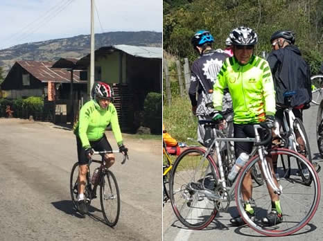 Merece mención especial el esfuerzo realizado por dos integrantes del CicloBR, don Álvaro Cuervo y William Trejos que han venido dado muestras recientemente de su notable progreso en su desempeño, lo cual se reflejó hoy con la esforzada subida a Canicas. En la gráfica se observa a William pasando por la “Escuelita” y Alvarito coronando el Alto de Canicas.