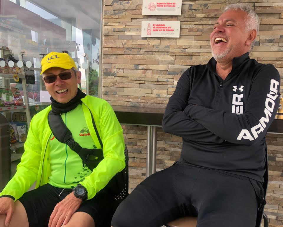 La tertulia estuvo muy amena, la cual giró alrededor de la venta del marco de la bicicleta “Rosa” de Marcolino Barrera, las razones que habría tenido nuestro dilecto amigo Orlando Márquez para abandonarnos el día de hoy y, la aparición de un invitado, quien prácticamente se hizo invitar, como es Duberney Marín “El Novato”, quien resultó ser un paisa del Quindío, de conversación amena y muy entusiasta con CicloBR, pues hasta video nos tomó para mostrarle a sus amigos en Armenia.