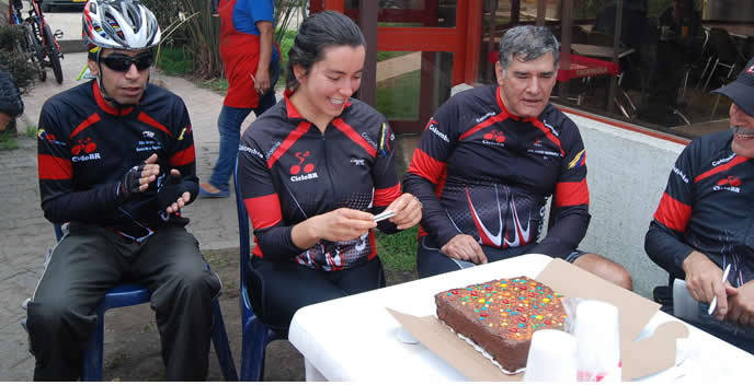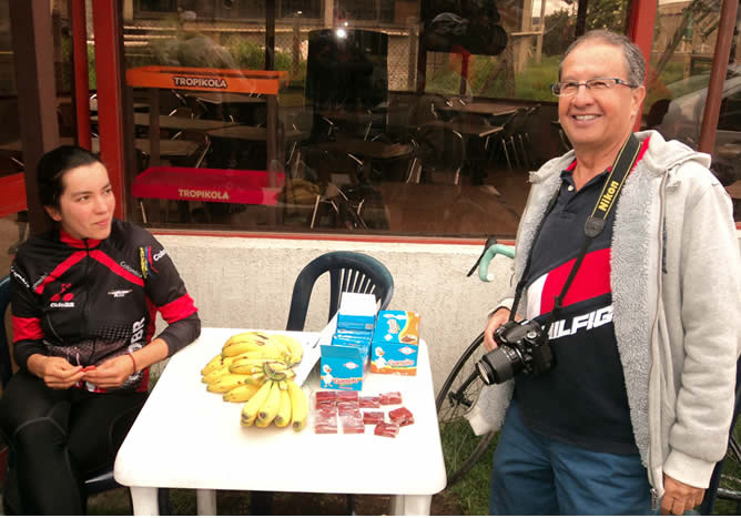 Iniciamos también el ciclo de los turnos de conductor elegido que ya son una institución en CicloBR; de esta manera cada domingo uno de nuestros ciclistas sacrifica la montada en bici, nos escolta en su vehículo y presta asistencia al grupo en casos de pinchadas o emergencias. El primer turno en este 2015 le correspondió al amigo Armando Torres quien llegó armado de su potente cámara y de bolsas con bananos, bocadillos y ponqués de chocolate Gansito. Gracias a Armandito por toda su colaboración en el primer recorrido.