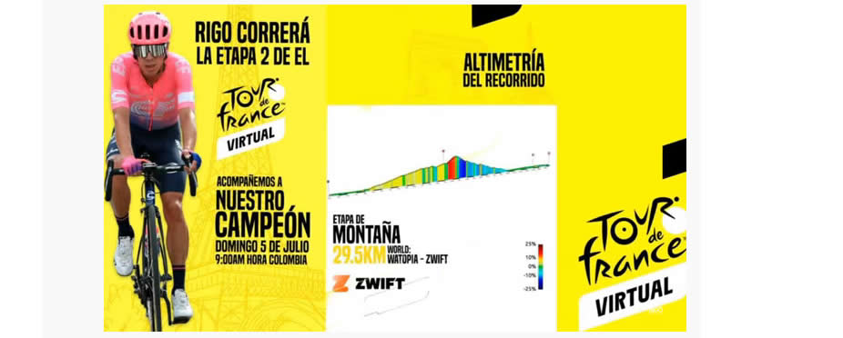 La promesa de un Tour de Francia virtual, que en efecto actualmente se desarrolla, de hecho empezó hoy sábado 04 de Julio y en el que valga decir puede participar cualquier ciclista aficionado que como cualquiera de nosotros cuente con los elementos necesarios para hacerlo, la preparación física adecuada y una suscripción activa en ZWIFT.