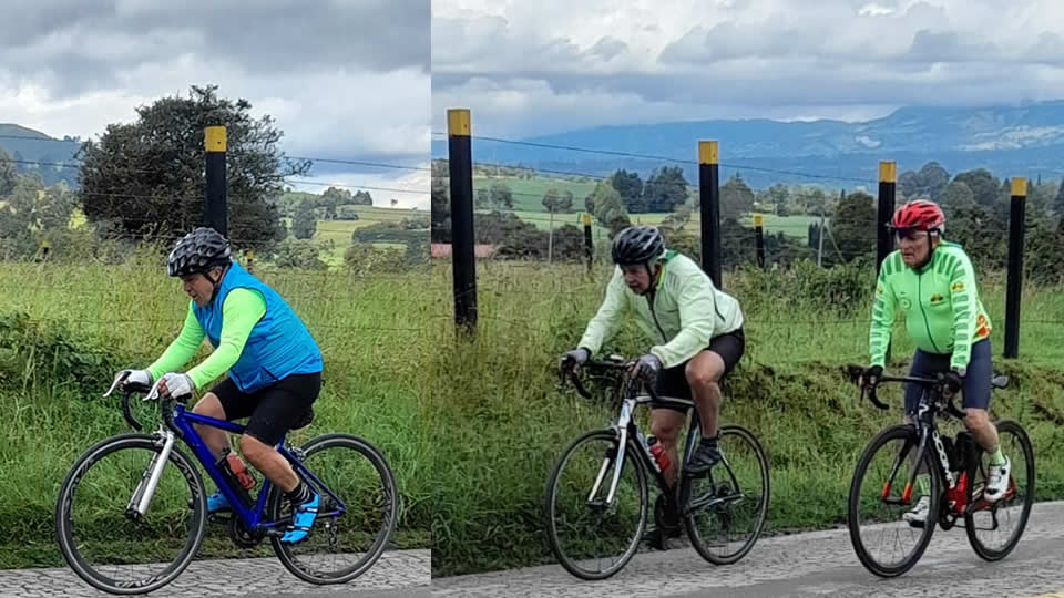 En el camino hacia Tenjo Héctor sufría tratando de no perder la rueda del grupo, abrigaba la esperanza de que le bajaran un puntico para poder conectar, pero no le obsequiaron ni una miradita atrás, adivinen quien conducía el grupo sin contemplación aplicando la máxima, "el que se quede que coja buseta", si señores el mismo Pulga en persona.