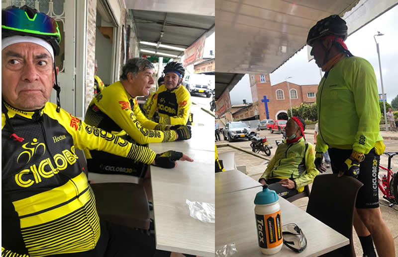 Paramos en la panadería de siempre frente a la plaza principal, donde encontramos caldito, agua de panela con queso y otros platos con los cuales nuestros amigos recargaron tanque. Chinazo y Fernando escogieron otro sitio, ellos son expertos en gastronomía de los paradores ciclísticos y seguramente encontraron algo con mayor carga energética.