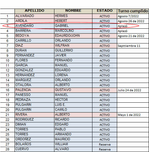 PD: Lista conductores elegidos, esta es la de conductores elegidos; se había solicitado a las personas que no están saliendo en la actualidad con el grupo, que nos informaran si eventualmente podrían colaborar como conductores, pero salvo Ana Niño, ninguno manifestó su voluntad de apoyar ese plan, así que contamos en definitiva con 25 vehículos. |