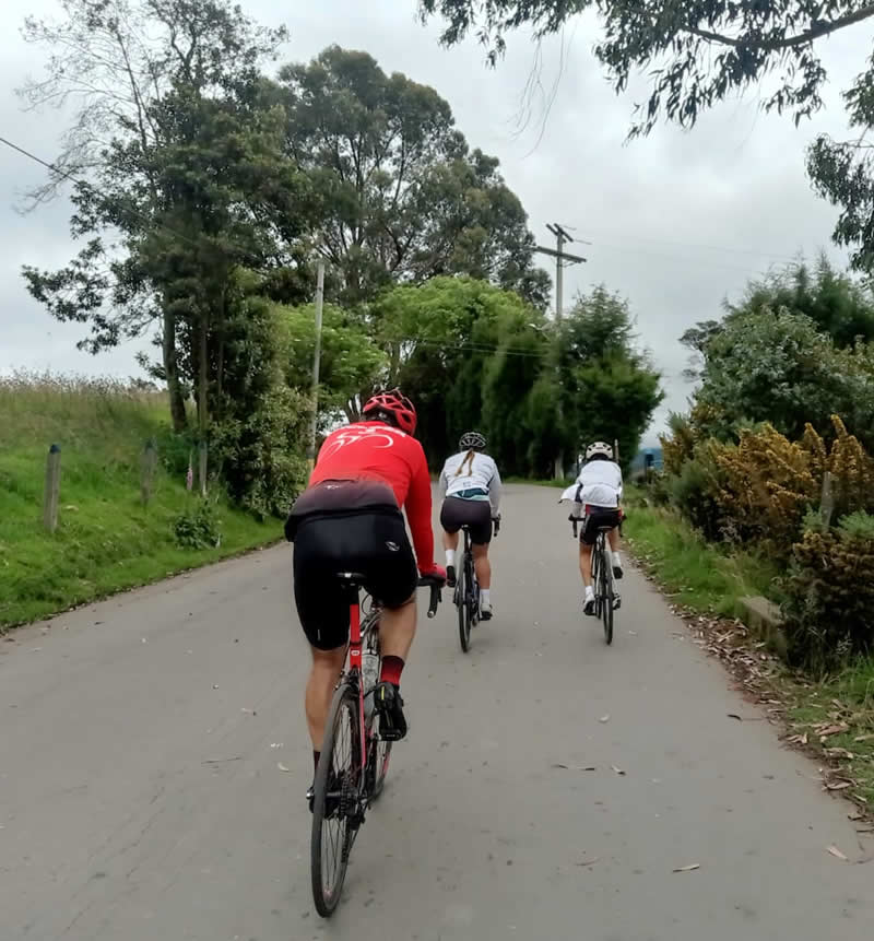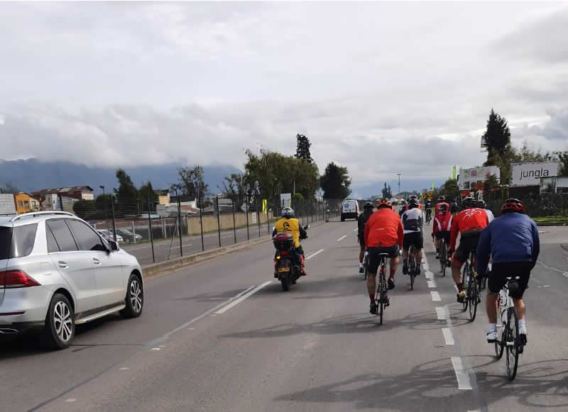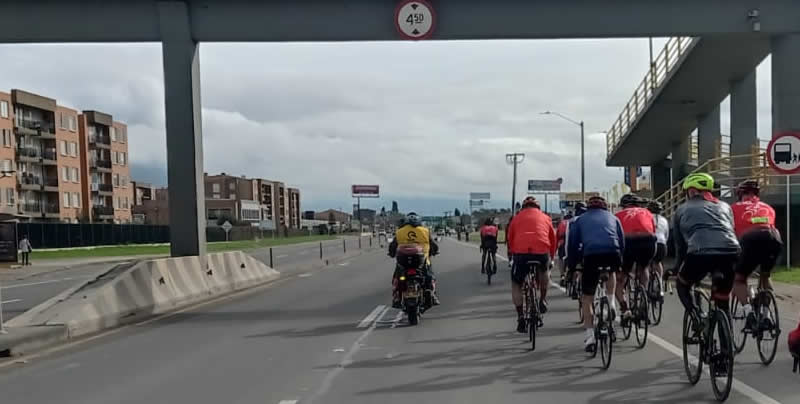 El lote imprimió un ritmo de calentamiento que permitió mantenernos unidos hasta el inicio de la variante, allí por la obra y los cerramientos, se angosta la vía, lo que ocasionó el fraccionamiento del pelotón. Nos reagrupamos en la entrada a Cogua. Ingresamos al pueblo y buscamos la salida hacia las Margaritas, una de las motos nos colaboró deteniendo el tráfico en el cruce luego de los reductores, punto en el cual a algunos antes nos tocaba poner pie a tierra pues los vehículos no nos dan paso y es un punto en subida.