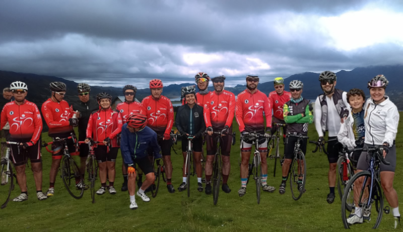 Partimos a las 8 de la mañana de Centro Chía, teníamos una mañana acompañada de un viento frío que obligó a nuestros pedalistas a usar sus rompe vientos, de tal manera que la caravana que habíamos anunciado a Staff Cycling se distinguiría por las camisetas rojas, se tornó en multicolor como se puede apreciar en el video que incluimos en la portada de esta crónica, elaborado fusionando los tres que hicieron y nos enviaron los motorizados acompañantes.