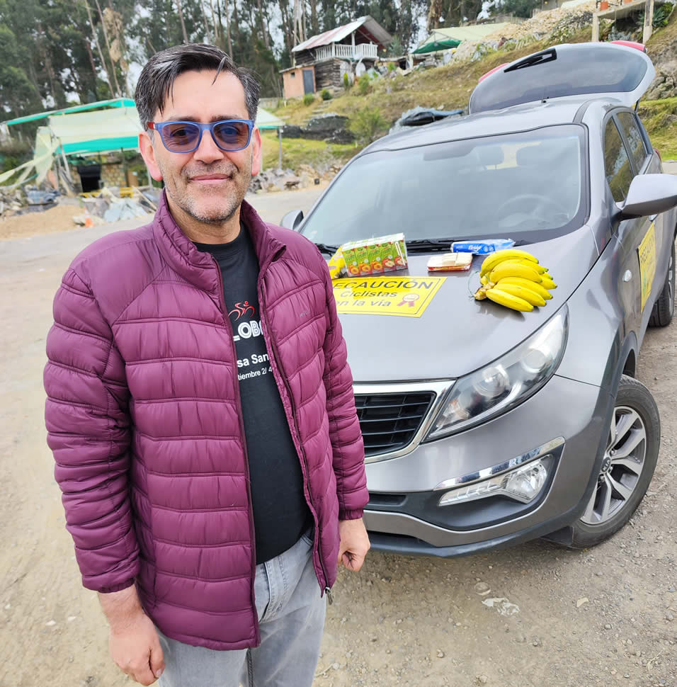 Javier llega con su vehículo cargado de bananos, galletas, bocadillos y juguitos de caja, qué pena con el, hoy tuvimos una muy pobre asistencia. Javi dice que no hay problema, sus hijos van a tener onces para toda la semana y tomarán sorbete de banano por los menos dos dias.