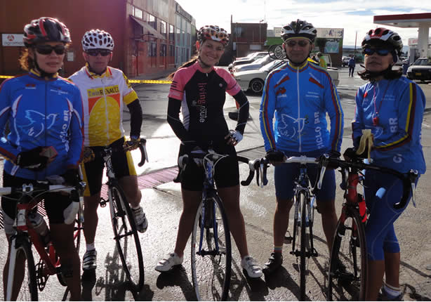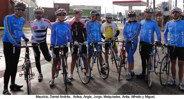 Ya en Siberia, en los Kioscos, el cielo estaba un poco más despejado pero hacía un frío tenaz. Previamente nos habíamos citado para encontrarnos entre 7 y 7:30 a.m. Casi todos llegaron puntuales, pues como siempre en esta ciudad a algunos se les presentan problemas con la movilidad debido a las cobijas, pues duermen con una nueva encima y una vieja debajo. Faltaban Miguel Granados y Mauricio Ordóñez, los esperamos y conformamos el siguiente grupo: