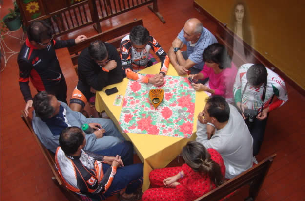 La historia comenzó en Iza el viernes 24 de junio en el hotel Complejo Vacacional Comamos Trucha en donde Carolina y Fernando nos recibieron y hospedaron. Allí llegamos 20 ciclistas y 14 familiares. Luego de la cena y de dejar lista la bici para el trabajito que le esperaba, nos reunimos para degustar una selección de vinos que se le había encargado a William Trejos nuestro enólogo de cabecera.