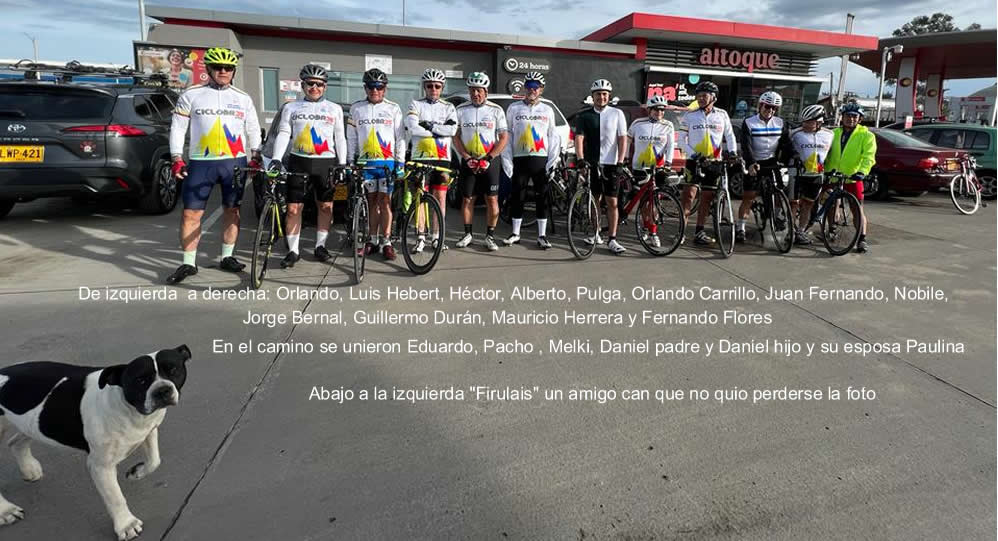 Cuatro horas antes habíamos partido del mismo punto con coordenadas hacia el Chuscal, los doce de la foto más los seis que se unieron en el camino. A la hora de salida, 7:15 am, ¿cumplidos no?, aunque teníamos un día despejado, en la Terpel soplaba un viento helado, pero una vez empezamos a rodar por la calle 80, y pasamos el peaje el sol se convirtió en un fiel acompañante.