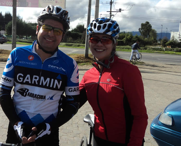 Hoy nos acompañó por primera vez Reynaldo Pulido, un ingeniero civil de 38 años, nos escribió el pasado mes de abril, al correo de CicloBR. Resultó ser empleado del Acueducto y conoce a Diana, pues fueron compañeros de natación, pero no sabía que ya ella era de nuestro clan. Como dicen las señoras, este mundo es un pañuelo. Además nos escoltó en su vehículo la esposa de Reynaldo. Esperamos que se hayan divertido en la primera salida y que ojalá no se asusten por el extraño fenómeno ocurrido hoy.
