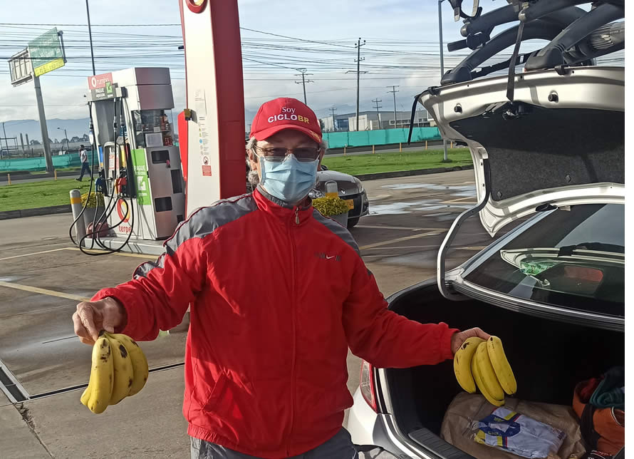 Venía alegre, sorprendió a sus colegas ciclistas al entregarles bananos y bocadillos para el camino, algo que realmente no es obligatorio, con el solo hecho de prestar el servicio nos damos por bien servidos, dado que además el elegido tiene que asumir cotos como peajes, que anteriormente se pagaban con las cuotas de sostenimiento que aportaban los afiliados, las cuales fueron suspendidas desde hace dos años. Quedamos entonces muy agradecidos con Alberto Rivera por su acompañamiento y el apoyo como reportero gráfico.