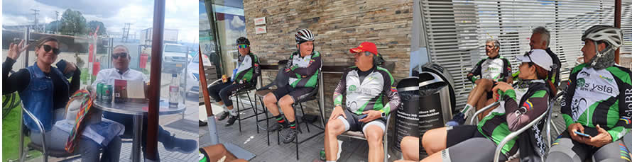 Cuando vamos al Chuscal, últimamente paramos en una panadería a tres kmts del sitio donde tradicionalmente hacíamos el retorno, pero hoy justo pasaron adelante en la bajada Marcolino, Orlando carrillo, A. Otálora y William Duarte quienes no conocían el sitio y fueron hasta abajo, Pulga, Wilfran y Fernando bajaron luego, mientras otros degustábamos el delicioso combo de aguapanela, con queso pandebono y almojábana, la dosis ideal de doping para poder afrontar luego los 13 kmts de ascenso hasta el Vino.