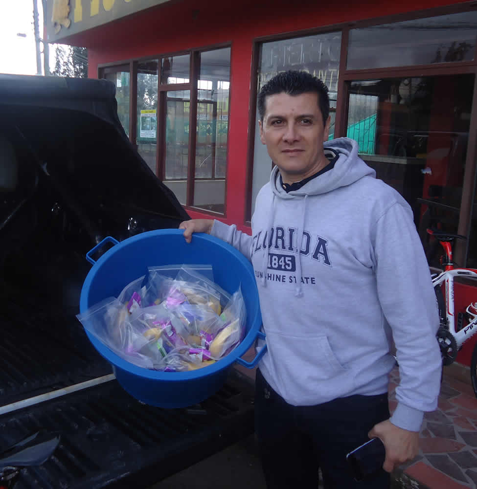 Agradecemos a Manuel por su acompañamiento y por las bolsitas de refrigerios que nos entregó.