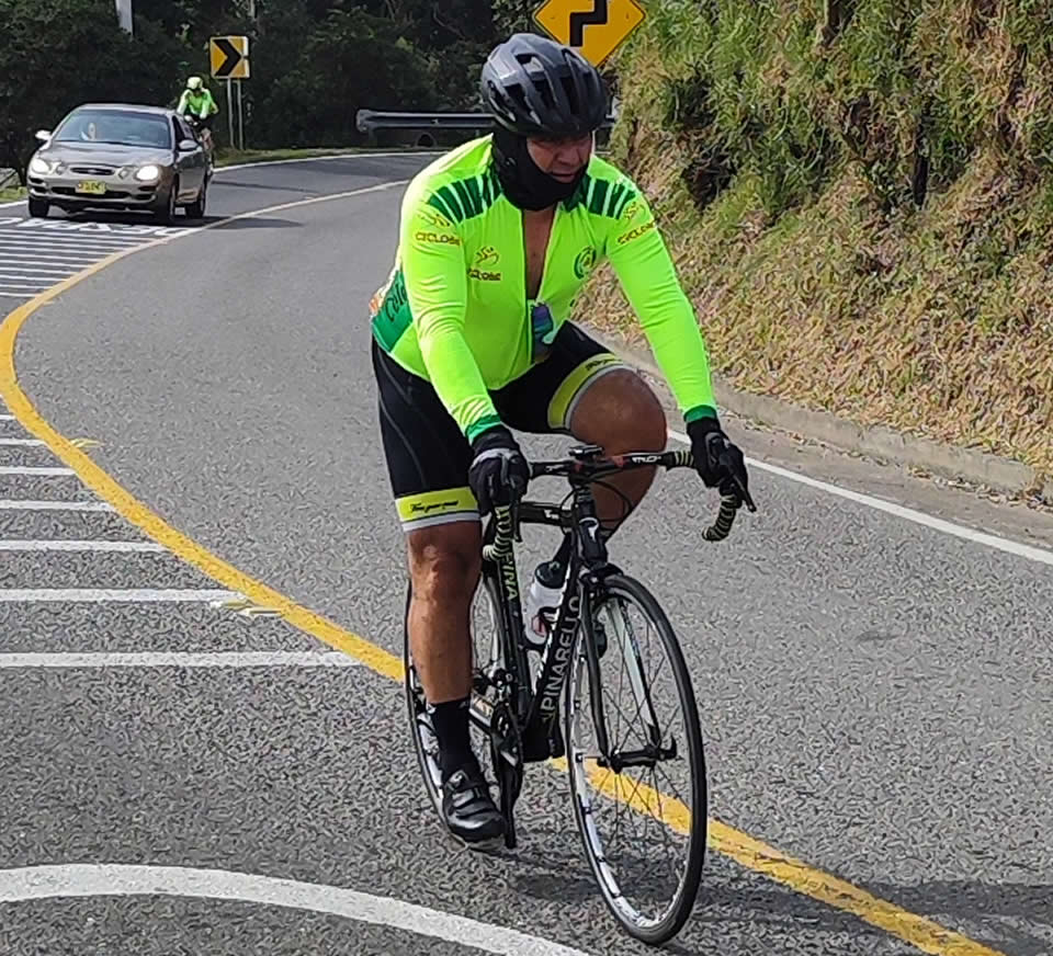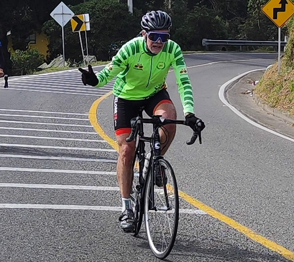 Eduardo quien anda en buena forma se vino adelante. Atrás venían Hebert y Wilfran acompañándolo. La conductora de un vehículo les informó que un ciclista con la misma camiseta nuestra se había caído más arriba. El carro acompañante se adelantó rápidamente y en efecto a falta de un kilometro para llegar a Zipacón Eduardo se le rompió la cadena en el momento en que se paró en los pedales y se cayó, sufrió varios raspones y un golpe en las costillas. El médico Juan Fernando utilizó el botiquín del Grupo y le limpió los raspones en las rodillas y la mano. Curioso pues Eduardo dice que la cadena la había comprado hace dos semanas, le tocó subirse al carro, por primera vez en su carrera ciclística.