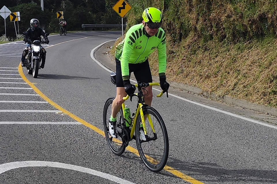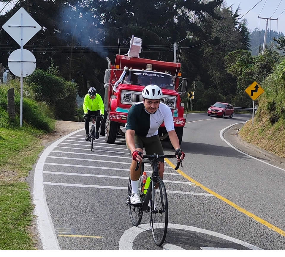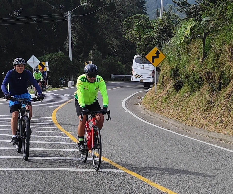 Los ingenieros que diseñaron esa vía no se pusieron en rodeos, pues de una se nota como la carretera pica hacia arriba para ganar rápidamente 200 metros sobre el nivel del mar, no da tiempo de calentar las piernas; un primer desnivel que aguanta relación dura hasta llegar al cruce con la vía férrea y luego un ascenso más exigente que parece eterno y que exige piñones suaves, hasta la casa rosada.