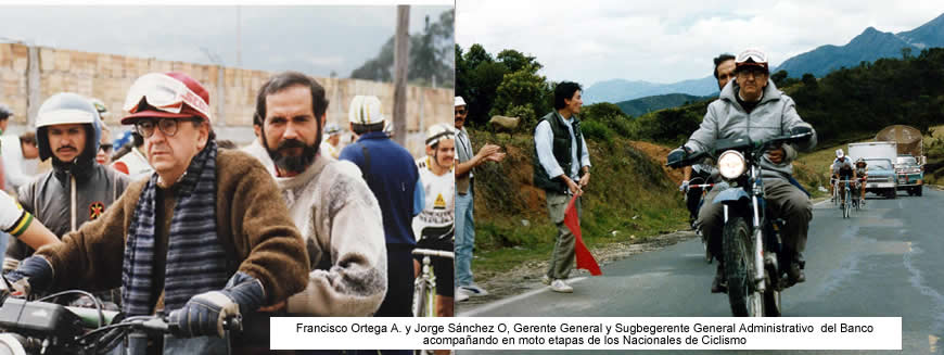 Gracias a esa semilla y a la fiebre por el ciclismo que se despertó, decidimos como empleados solicitar el apoyo institucional del Banco de la República, tuvimos la fortuna de contar con funcionarios como el Gerente General Dr. Francisco Ortega Acosta y del Dr. Jorge Enrique Sánchez Oviedo Subgerente General Administrativo, por lo cual prácticamente cada año podíamos renovar el ropero ciclístico con una nueva camiseta para que lucieran los integrantes del Grupo de ciclismo en Bogotá y en las sucursales que ya contaban con aficionados a este maravilloso deporte.