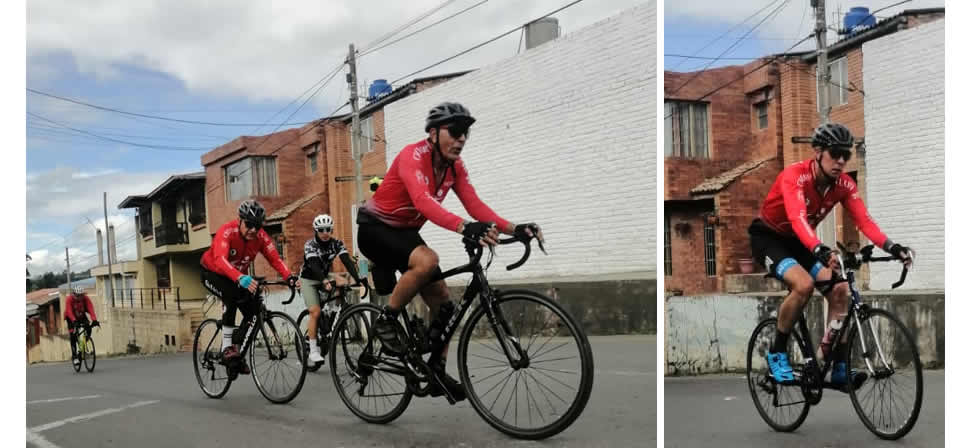 Oscar de tercero, Marcolino de cuarto, Héctor y cerrando Pachito, luego los pasantes, ciclistas fuera de serie, Wilfran y Duberney pendientes en todo momento de sus alumnos.