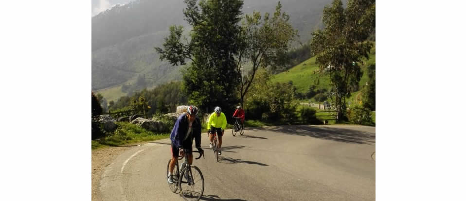 Tenemos que recorrer 5.5 kmts para alcanzar el primer objetivo de montaña, el alto del Zipa, la carretera se ve aún en perfecto estado, no vimos un solo hueco. Giaco encabeza el grupito que asciende en el cual están Eduardo, Geoffre y Pablito. Solo por picarlos, en una de las rampas no muy duras los paso indicándoles que los espero arriba; como lo esperaba Eduardo me alcanza y me dice. “Verriondas las pepas que se mandó Chino”, Pablito tambien pasa y susurra algo similar. Como decía Pachito, todo lo del pobre es robado.
