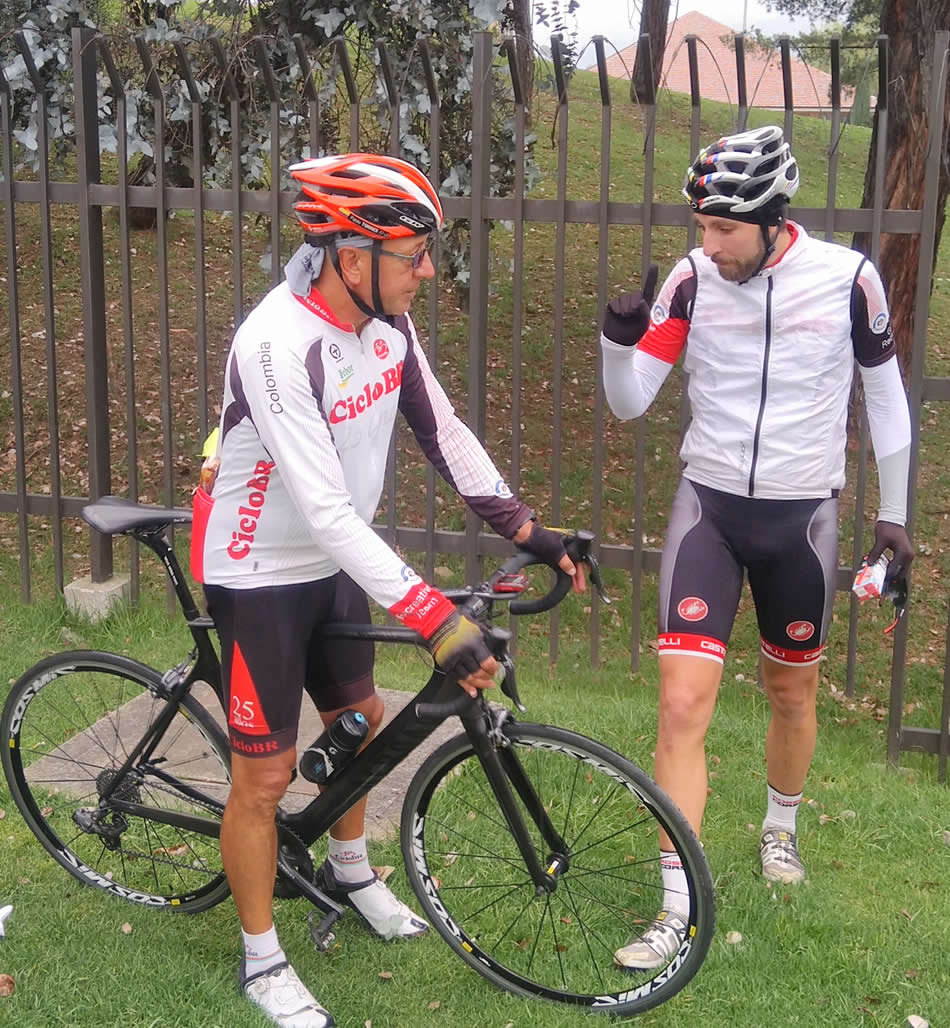 En el plano luego de superar Zipaquirá nos pasó un lote con unos 10 pedalistas que bajaba del alto del Águila, como veníamos a paso moderado nos echaron un vainazo: A un lado muchachos que esto es caminando, eso sonó petulante. Dándomelas de indignado, decidí pegarme a ese lote que comenzaba a acelerar cada vez más, yo tenía intenciones de pasarlos así fuera por unos segundos para que vieran que éramos del grupito que habían menospreciado (iluso que es uno), la verdad apenas si me sostenía atrás, anhelaba que otros compañeros me hubieran acompañado en este proceso reivindicativo. Cuando ya me estaban haciendo luz y pataleaba para no quedarme, apareció la caballería de CicloBR, Marcolino, Fernando y el General Pulga, ellos tomaron el relevo y se fusionaron en el grupo, mientras yo pagaba la osadía viendo cómo se me alejaban en el horizonte, quedé flotando, atrás venían Giaco, Pablo, Nobile, Ana, Eduardo y Geoffre