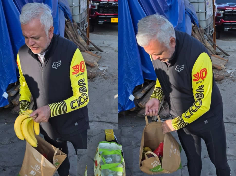 El tocayo repartió las viandas que trajo para sus compañeros y avisó que se sentía algo indispuesto por lo cual se iría como acompañante de Daniela, montó su bici en el carro por si se mejoraba.
