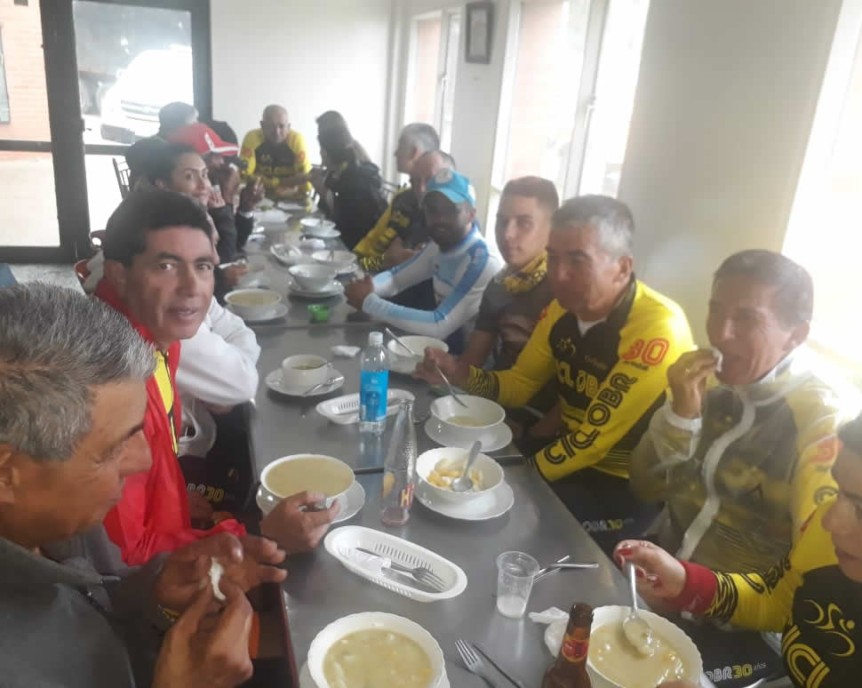 De esta manera se conformó el grupo de quince (15) pedalistas, tres damas y el conductor de la Van, Don Elías quienes acudieron a la cita el sábado 13 de octubre en la casa de Molanito y su esposa Carmen Cecilia en Chía. La mañana comenzó con un delicioso desayuno, el combustible ideal para la larga travesía.