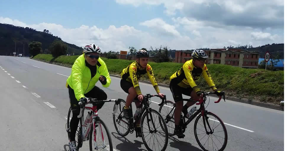 Cuando completamos los primeros 30 kmts de terreno plano se apareció la primera puntillita, la subida hacia Sesquilé luego de pasar el peaje El Roble, una subida de menos de un kilómetro pero que alcanza hasta el 8% de inclinación, suficiente para que los escaladores probaran sus motores y las sensaciones como diría Nairo. Guillermo quien venía atrás esperando a un amigo que había quedado de salir, encontró a W. Trejos y lo acompañó en la subidita, a mitad de camino viendo el esfuerzo que hacía le dijo: Don William le aconsejo una paradita y el mono fue sacando el pie para bajarse, noo una paradita en los pedales quiero decir. El amigo de Guillermo llegó, pero se aburrió y siguió derecho a Tunja nos pasó a todos, llego un ahora antes.