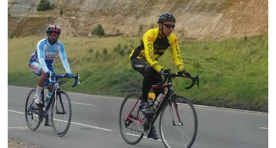 El siguiente objetivo era Villapinzón, ubicado a 12 kmts, el terreno plano había desaparecido, seguía en ascenso suave, pero. Persistente. Pasamos Villapinzón y se acabó la paciencia de los escaladores, apretaron el paso cuando el terreno montañoso se puso durito, yo diría agresivo. Fueron 10 kmts eternos kilómetros sin descanso hasta el punto que llaman límites donde acaba el “ala mi chino” y comienza el “sumercé”. Los Carrillo, Fernando y Pulga se engancharon estaban en su salsa y le dieron con todo.