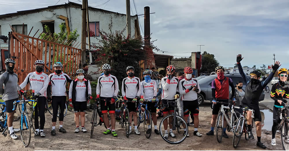 Para anticiparnos a la pregunta de Carlitos y/o de otros curiosos colegas de CicloBR, aclaramos que la señora que aparece en la foto, entre Alfredo y Fabio no monta en bicicleta, no es italiana, ni amiga de ellos, simplemente pasaba por ahí y la captó la cámara de CicloBR. Rosa Tulia se bajó un poco su tapabocas mientras posaba para la foto, pero nos consta que llegó Biosegura,como debe ser.