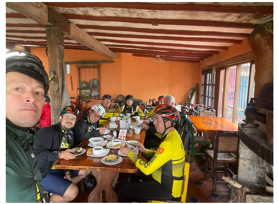 Nos reagrupamos en Mondoñedo, allí vi que Guillermo estaba delicado, le pregunté que qué pasaba y dijo que bajó a desayunar al k27, y como nadie llegó se devolvió de una, por ahí escuché a Pedraza decir: “pura …da”, le dijimos que con William le mandamos avisar que nos quedábamos a desayunar en el Curubital. ¿cierto William?, el …arica no decía nada apenas se reía y Guillermo delicado.
