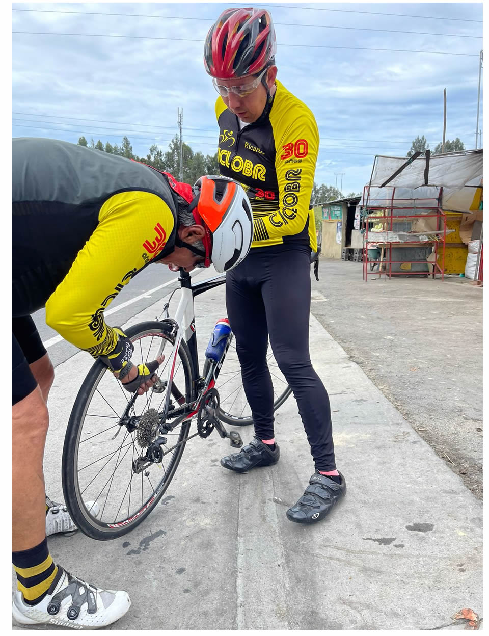 Llegando a Mosquera vimos el carro de Ricardo, parecía que venía solo, pero Wilfran dijo que vio a su lado un casco como sobre el tablero, luego vimos que iba con Guillermo.