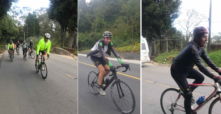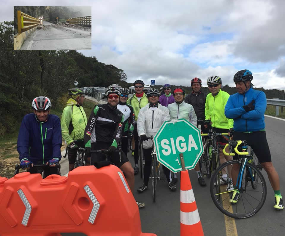 Cuando se planeó la etapa con el Chinazo y Pulga, la verdad pensamos que la mayoría subiría desde la circunvalar en carro hasta el páramo y luego si descenderíamos a Choachí, pero vea Ud. hay ocho ciclistas que en este punto ya llevan 40 kmts, 18 de subida: A. Rivera, Giaco, Fabio, Chinazo, los William, Duarte y Bolaños, Pablito, Ricardo y Henry. Pulga y Carlos, llevan 36, 4 en subida y yo 11 en loma pues por error me bajé antes.