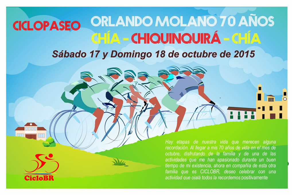 Orlando Molano y su familia los invitan a participar el la Clasica CHIA- CHIQUINQUIRÁ CHÍA que se realizara entre el 17 y 18 de octubre de 2015.