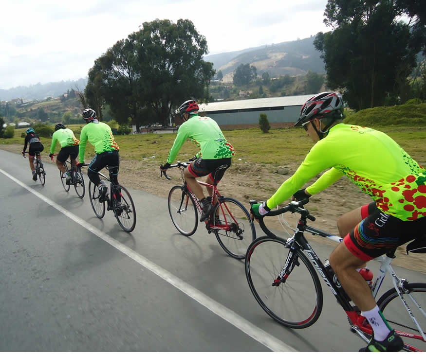 Partimos rumbo a Sesquilé y Sisga bajo un cielo completamente azul en un esplendoroso día. Pasamos Hato Grande, les puedo asegurar, que la velocidad promedio no superaba los 28 o 30 kmts, vi que Alberto incluso bostezaba, nadie parecía interesado en jalar el lote. Entonces en unos segundos todo cambió, la velocidad pasó de los 35 k/hora, de repente todos querían llegar a la cabeza del lote y jalar, esto parecía una prueba de relevos. Definitivamente algo extraño ocurría adelante, así que yo, tradicional habitante de la retaguardia del lote decidí, bajar un cambio y acelerar para investigar porqué aceleró ese grupito de once Verdillos quienes unos pocos minutos antes marchaban a un ritmo aburrido, ahora todos sonreían. Ameritaba investigar la causa del cambio.