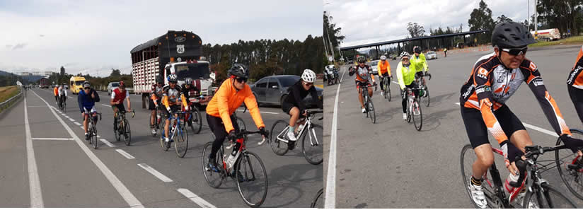Y ciertamente observamos en el recorrido de La Caro hasta el peaje, antes de iniciar el primer tramo de montaña, que hoy nos esperaba, que el grupo se mantuvo en orden haciendo relevos, de tal surte que siempre estuvo un integrante del equipo encabezando transitoriamente. Eso fue estupendo y se debió, de todas formas, a un llamado de atención que Don Guillermo le hizo a quienes encabezaban el lote en ese momento, pues veníamos a la no despreciable velocidad de 37 kilómetros por hora, fríos y sin calentar, con excepción de los hermanos Molano y Fernando Flores, que ya traían un buen número de kilómetros en sus piernas.