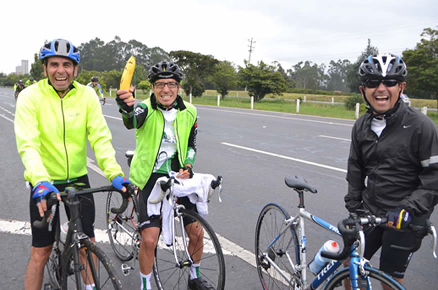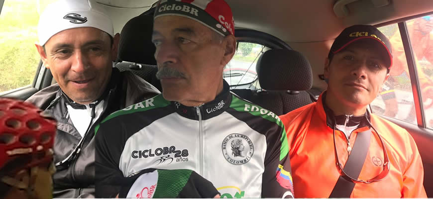 Durante solo unos segundos posamos para las fotos que tomó Camilo presionado por el afán de algunos compañeros quienes exigían una pronta salida. La línea frente a la lente de Camilo la componían 13 ciclistas, pero sabíamos que Fabio y Mao venían persiguiendo.Como verán