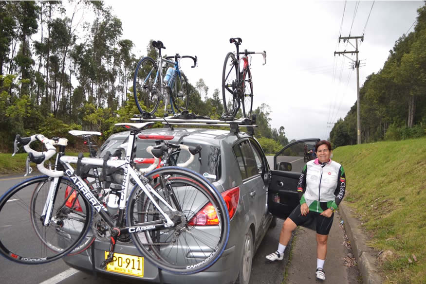 Mauricio Peña venía como pez en el agua metido en el grupo durante todo el trayecto plano, en el primer repecho observó con angustia como sus compañeros ponían una marcha de montaña que él buscaba sin encontrarla, se le alejaban hasta perderse en el horizonte. Llegando a Sesquilé vio un carro plateado con porta bicis parado debajo del puente y algunos ciclistas a su alrededor, le volvió el alma al cuerpo, puso pie en tierra, le pareció excelente que el grupo tuviera esa gentileza de parar a esperar. Pronto se dio cuenta de que ese no era el carro acompañante y que aquellos ciclistas tenían otras camisetas, resignado emprendió el camino.