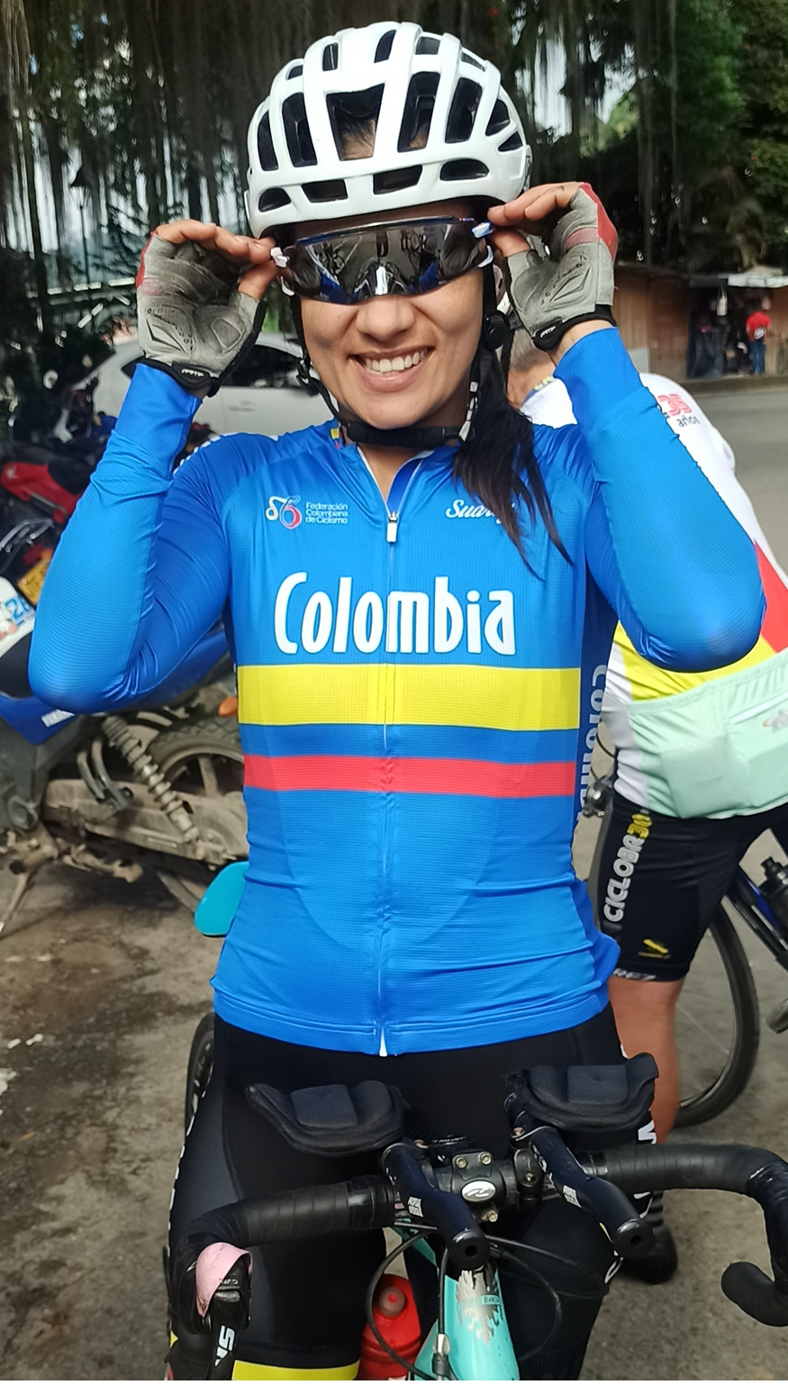 La niña de azul es Lily amiga de Carrillo, un dura, es ciclista élite ha participado en selectivos para vuelta a Colombia; en la foto no aparecen Lorena ni Martín, venían en camino y se integrarían luego.